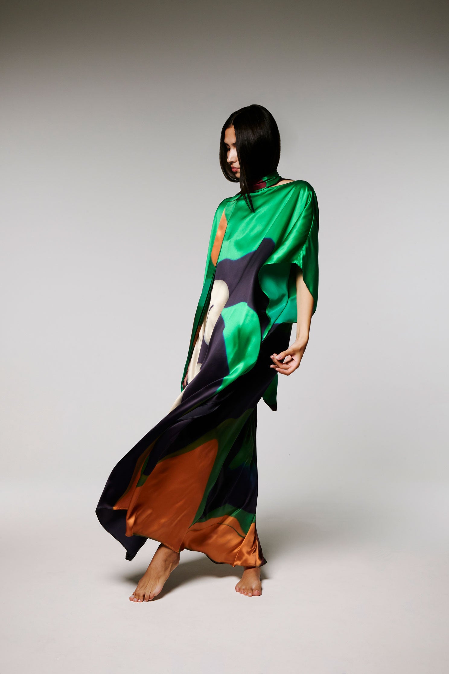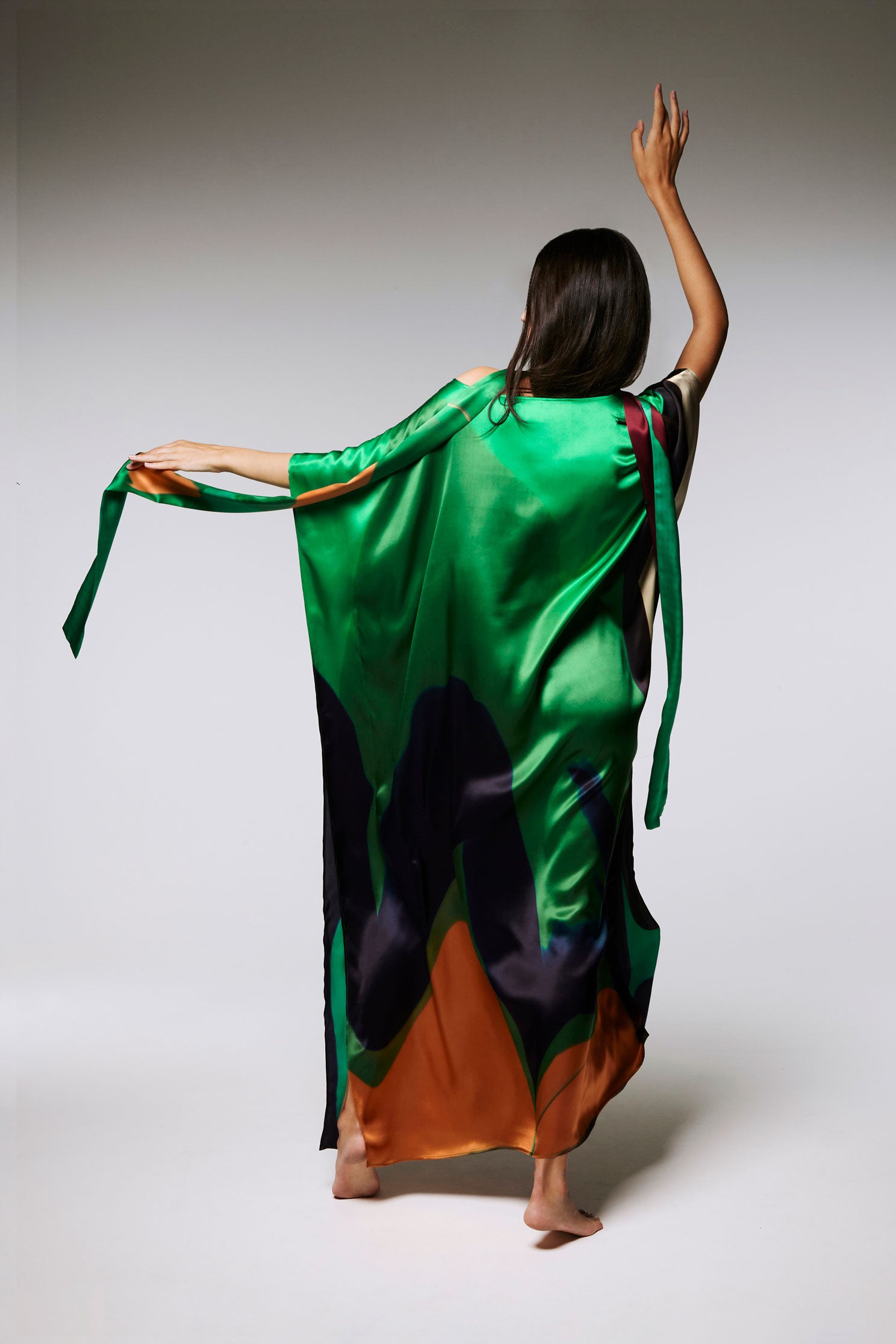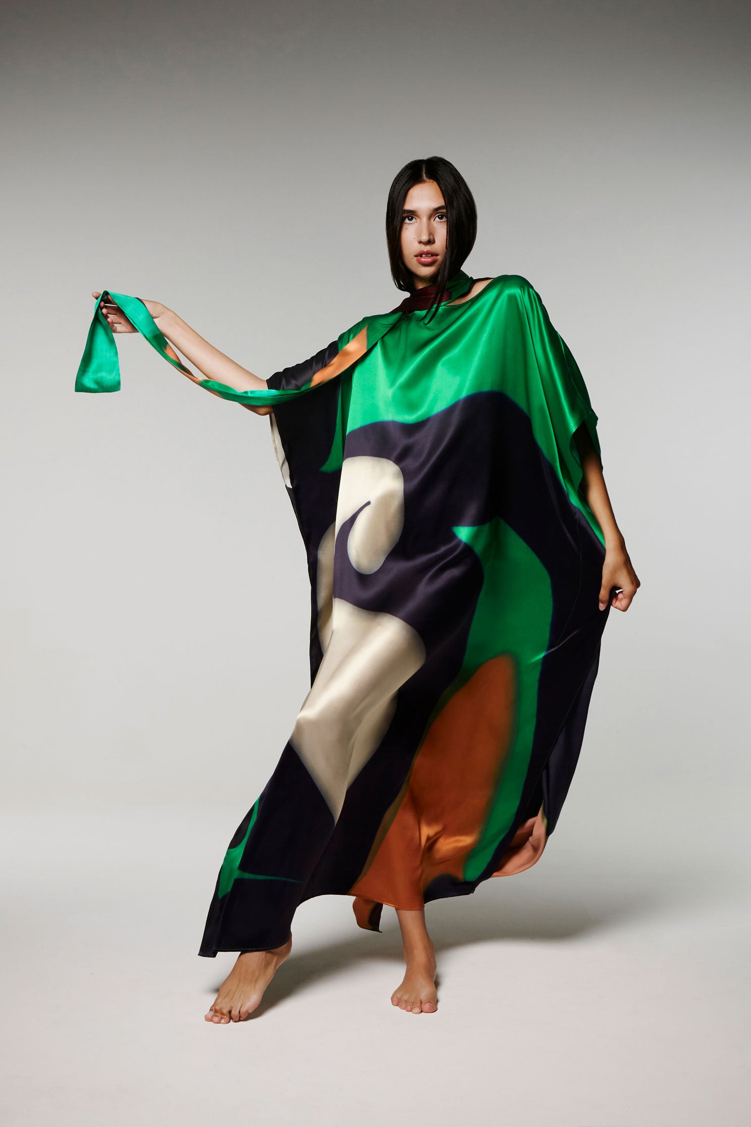 Ce Caftan est une édition limitée, réalisé en soie, le motif est imprimé à partir d’un tableau de l’artiste Nathalie du Merle.