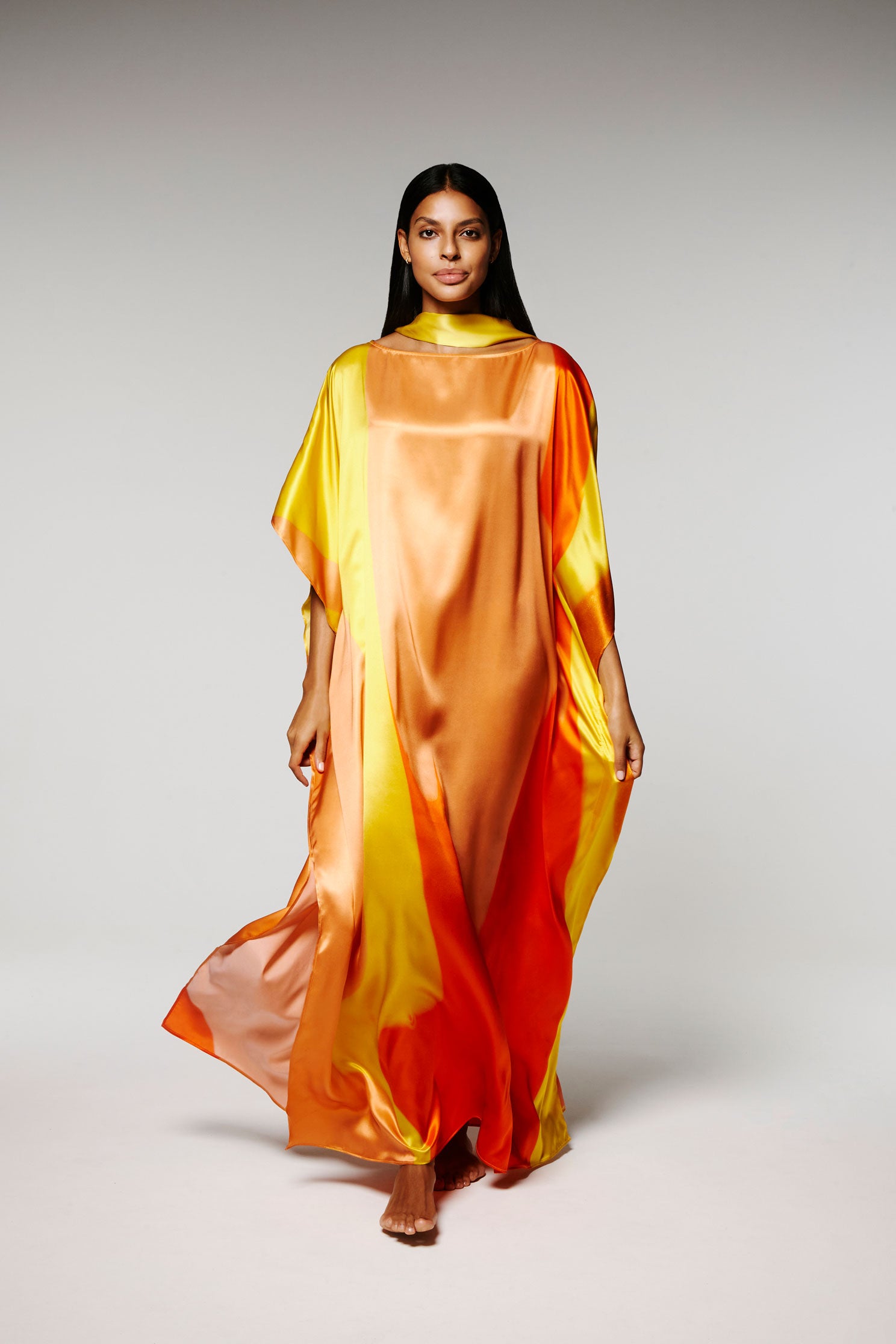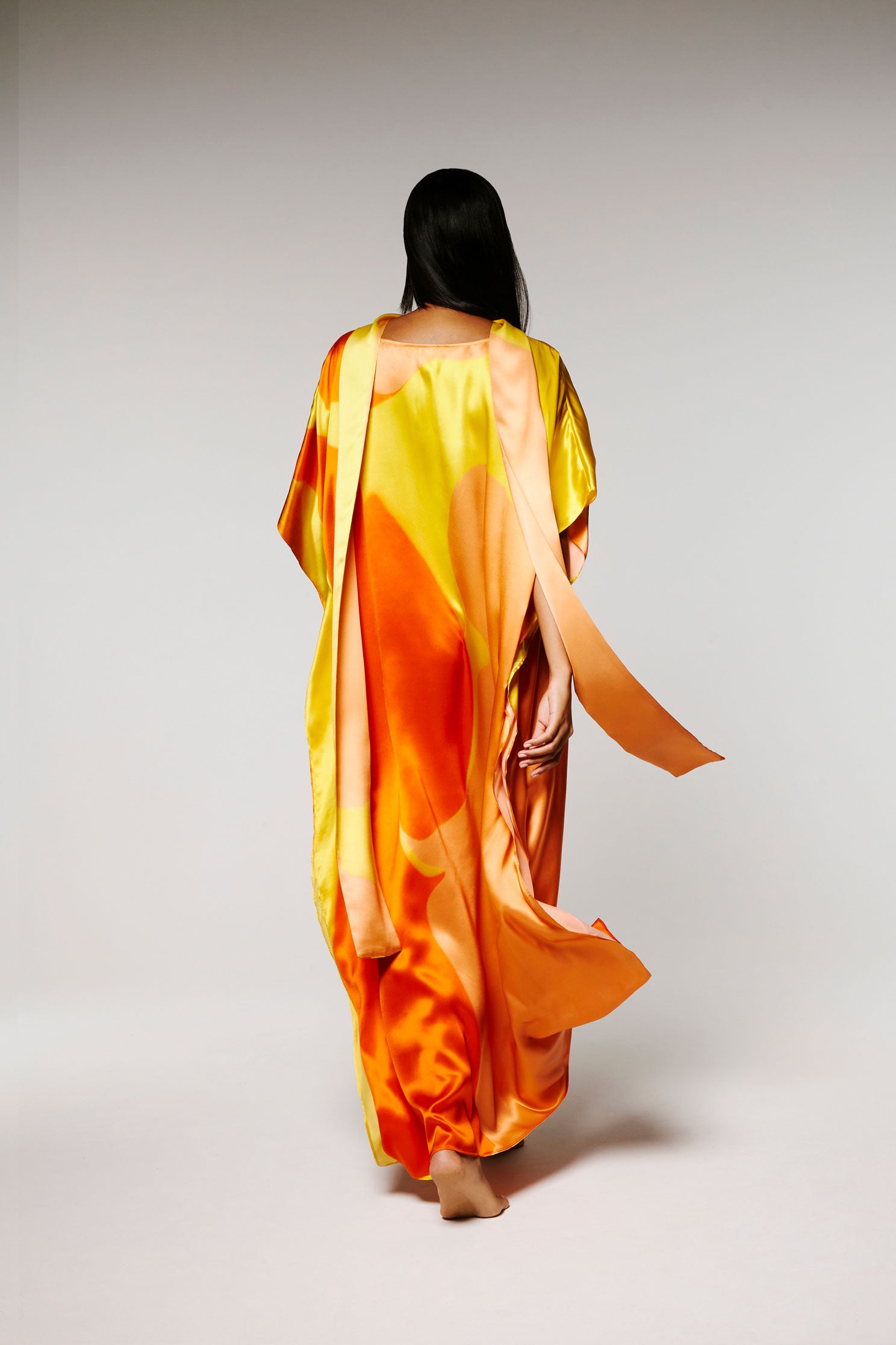 Ce Caftan est une édition limitée, réalisé en soie, le motif est imprimé à partir d’un tableau de l’artiste Nathalie du Merle.