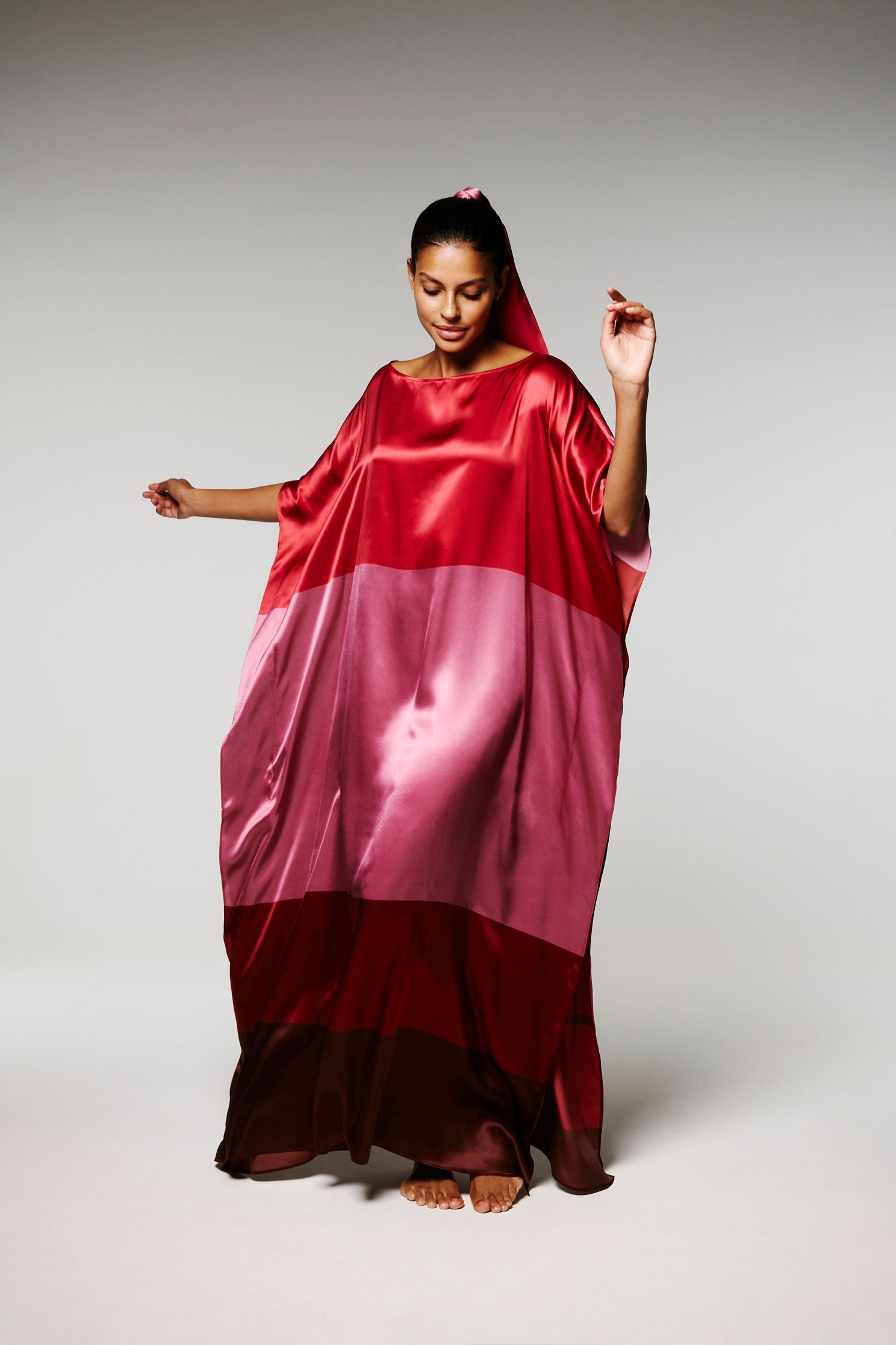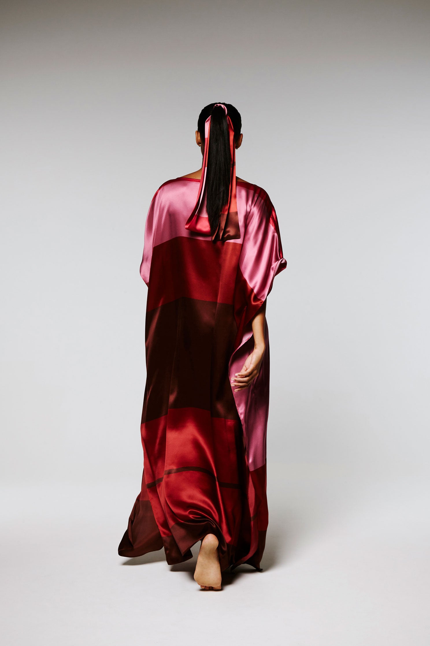 Ce Caftan est une édition limitée, réalisé en soie, le motif est imprimé à partir d’un tableau de l’artiste Nathalie du Merle.